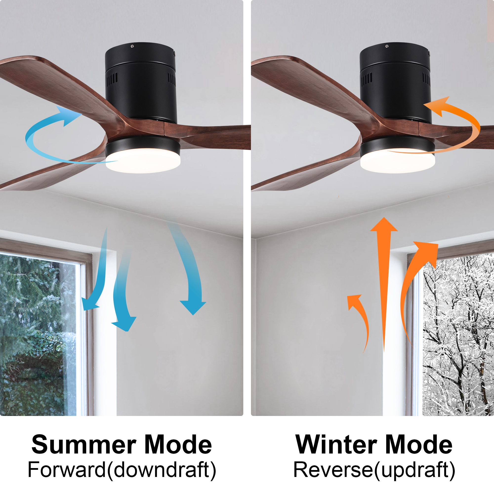 - Two mode chioce: Reversible motor allows you to change the direction of your fan from downdraft mode during the summer which helps cool the room, updraft mode during the winter to help circulate trapped warm air near the ceiling