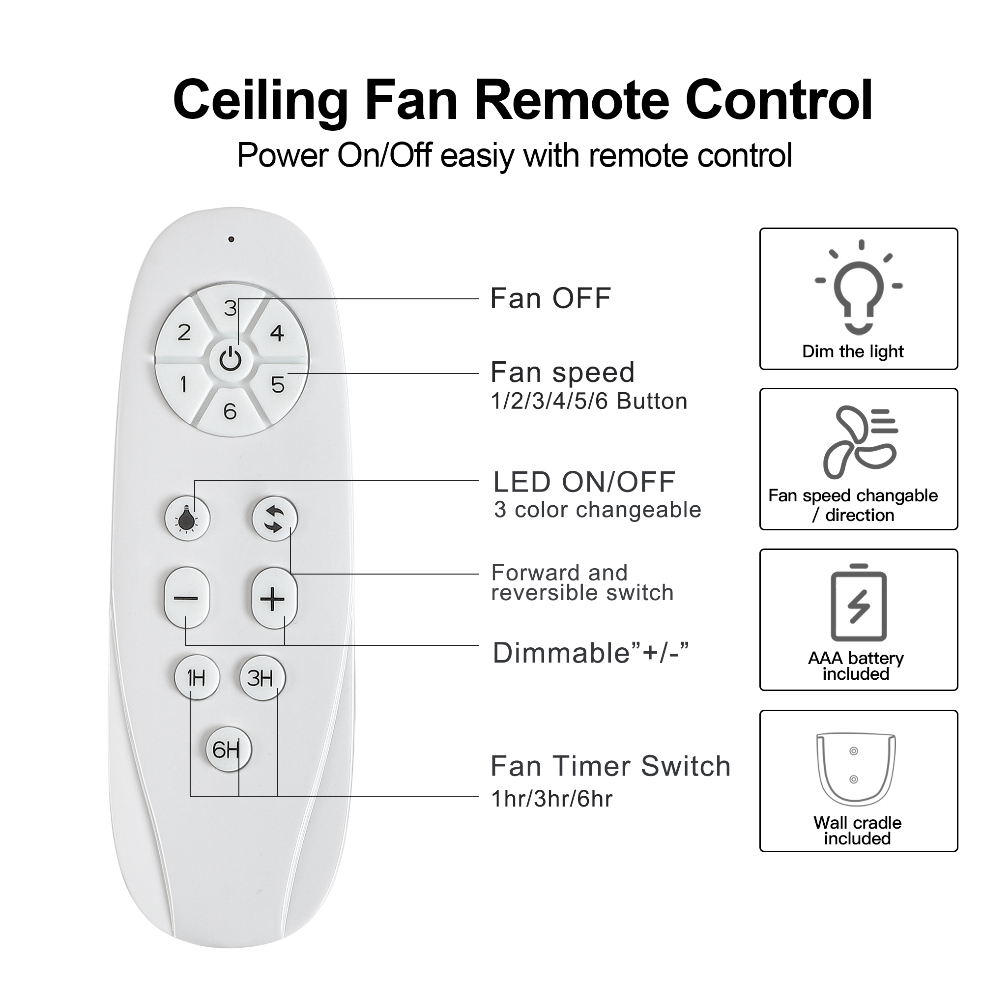- Remote control: only need a remote control, your can enjoy all function of the ceiling fan